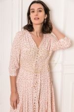 - Détails : ceinture à nouer, boutons sur toute la longueur, motif floral vintage, fente