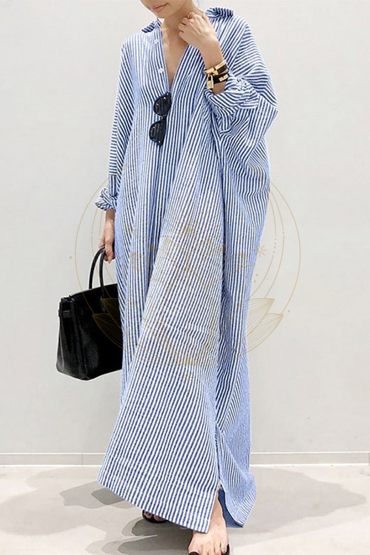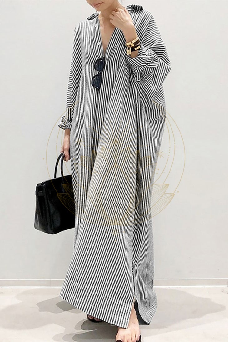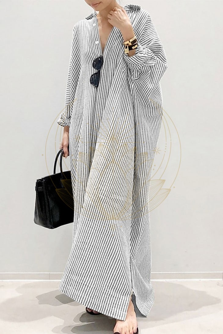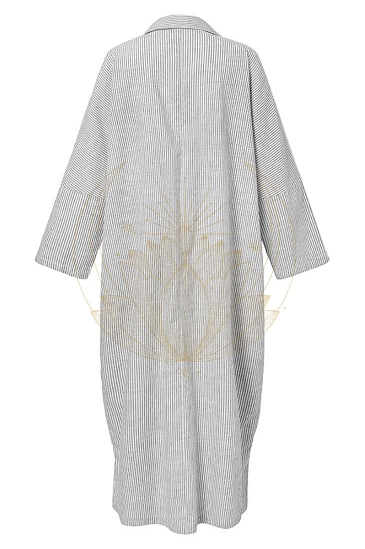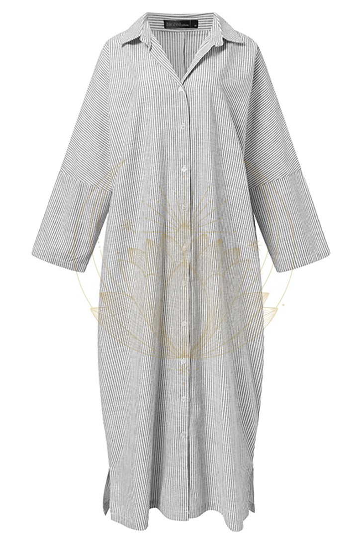 Avec son tissu léger et rayé, elle assure un confort parfait durant les journées chaudes. Son haut style chemisier avec des boutons sur le devant propose une coupe flatteuse, tandis que la partie inférieure ample et longue garantit une bonne couverture.